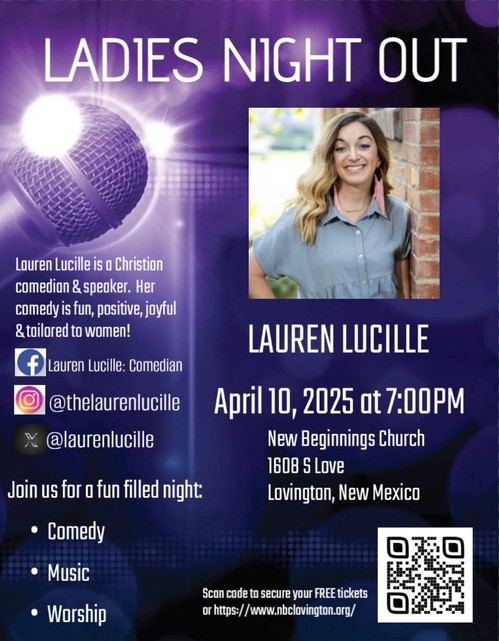 Coming up, look forward to Ladies Night with Lauren Lucille, professional comedian and speaker: 7-8:30pm on Thursday, April 10.